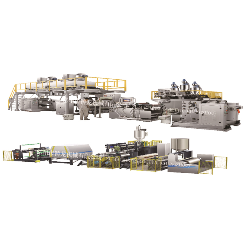 鑄龍ZLX-LM擠出淋膜復合機組系列,利用PE/EVA/PP/TPU/POE等熱塑材料的擠出工藝,對基材進行單/雙面覆膜或多層復合,形成具有多種功能的復合制品。該系列設備擁有多種模塊化結構,通過模塊組合,可以實現(xiàn)低速、中速、高速、超薄、超高克重淋膜復合功能,適用淋膜基材涵蓋薄膜、無紡布、珍珠棉、發(fā)泡卷材、紙、紡織品、編織布、針刺布、水刺布、網格布、功能隔膜、金屬箔、鍍鋁膜等。通過單機、雙機、多機以及單層/共擠、預熱、預涂、復合等功能選配,可以滿足食品、外包裝、裝飾品、建材、農業(yè)、光電、車船航天功能材料等領域的廣泛需求。